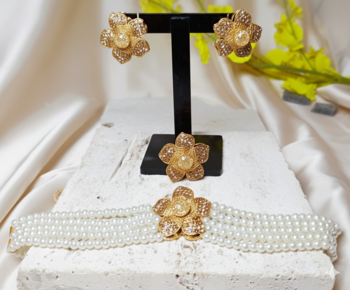 24K Gold Plated Floral Choker and Stud Earrings Set