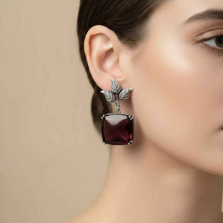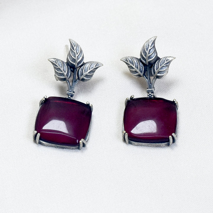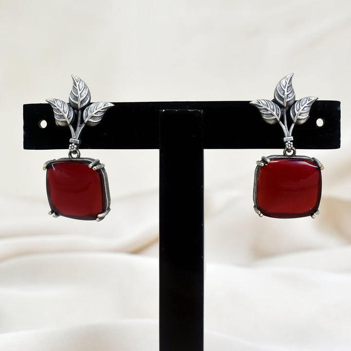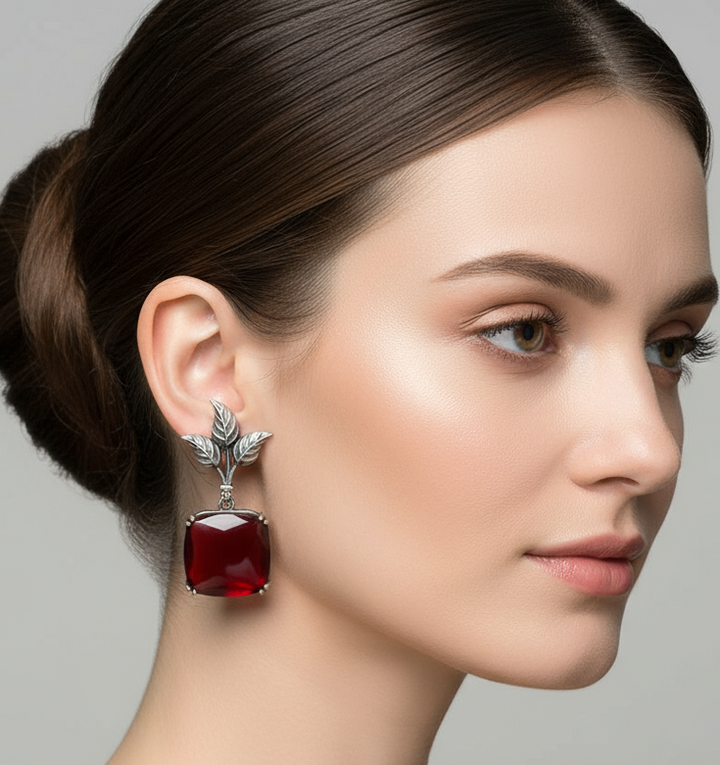 Artistic Flair: Designer Leaf Earrings with Red Stone