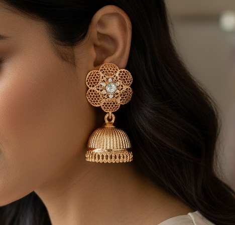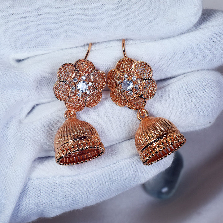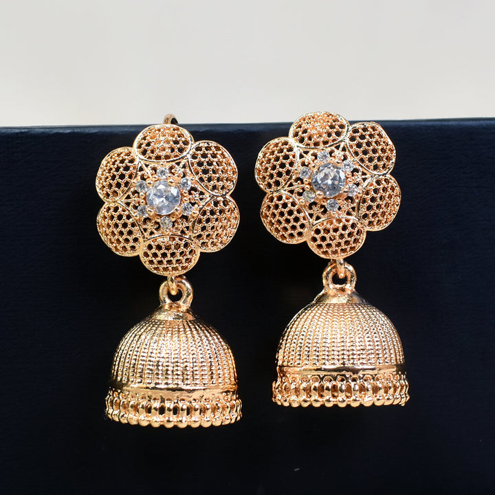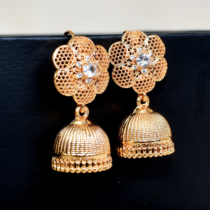 Blooming Grace: Gold-Plated Flowery Jhumka Earrings