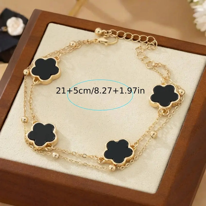 Boho Style Lucky Clover Double Layered Anklet - Golden Alloy, Dainty Chain