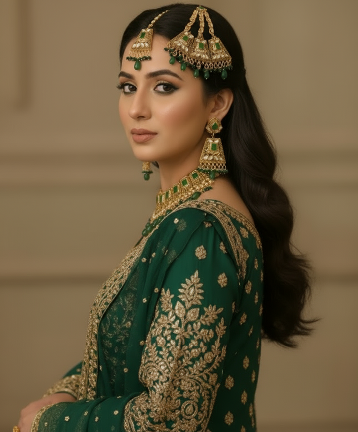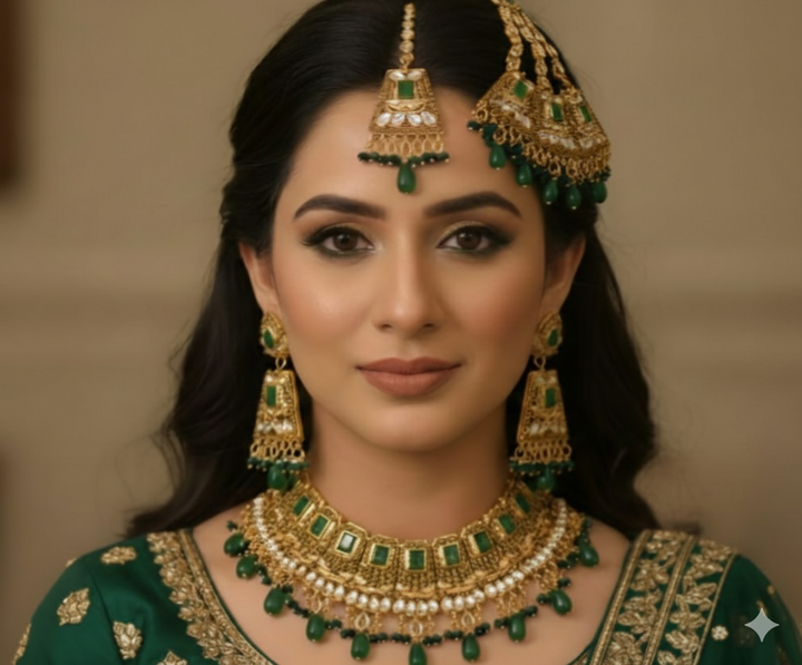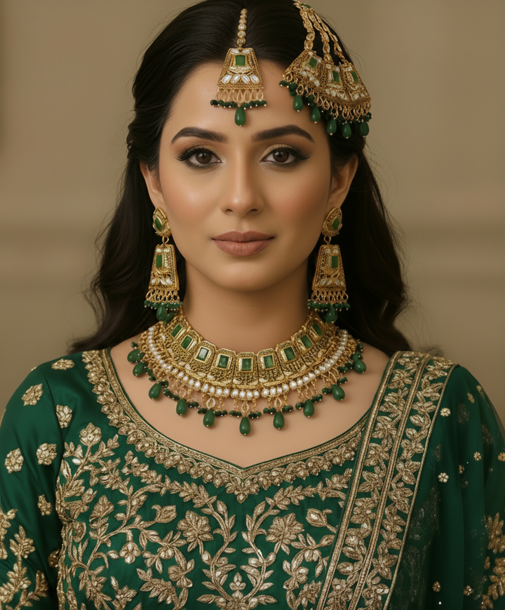 Bridal Treasure: Intricate Gold and Emerald Jewelry Set