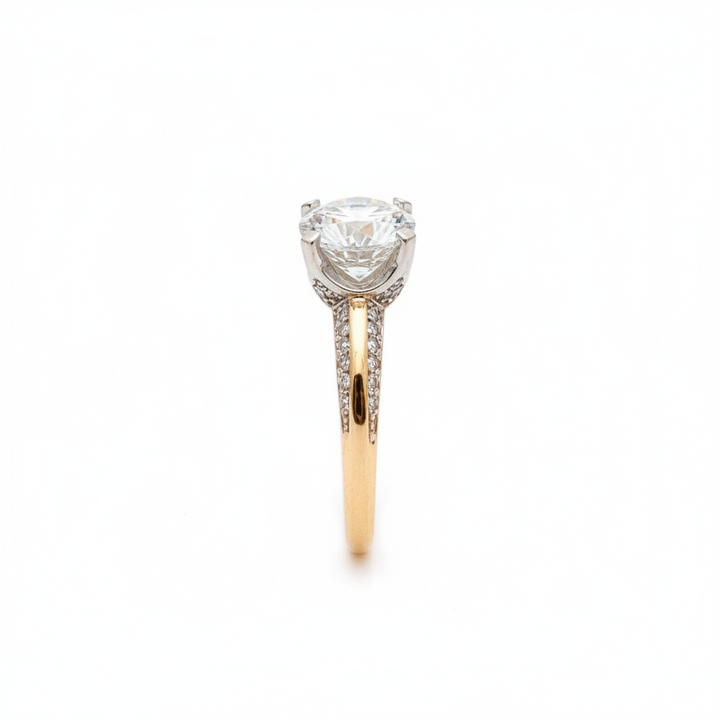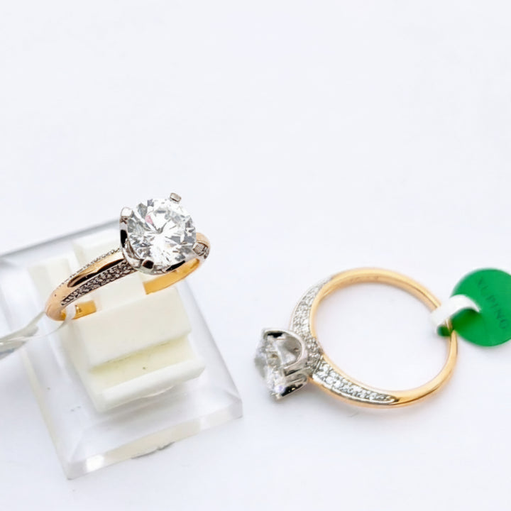 1 Piece Xuping Classic Round Brilliant Cut Ring with Detailed Band