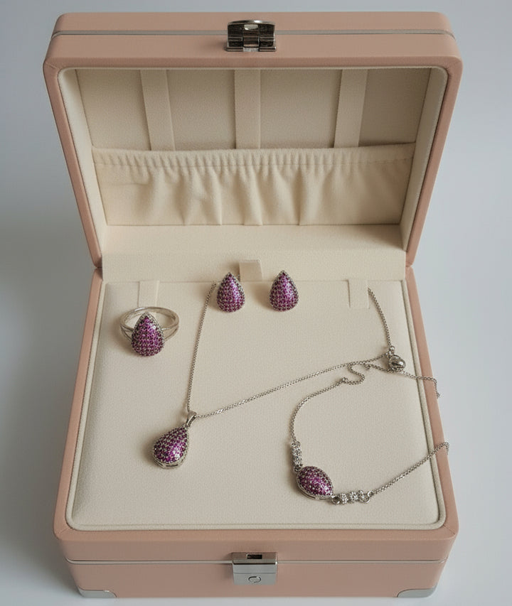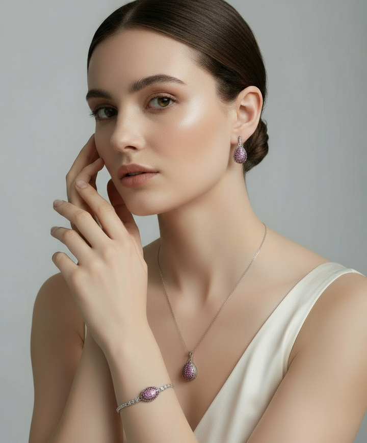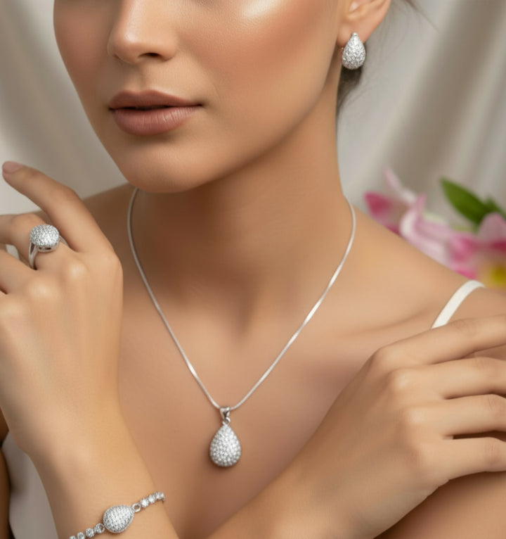 Cubic Zirconia Silver Teardrop Full Necklace Set