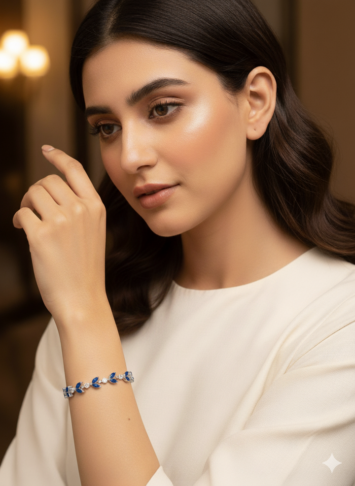 Silver-Toned Blue Stone Leaf Bracelet