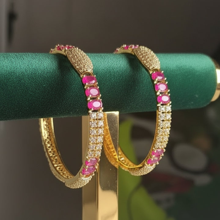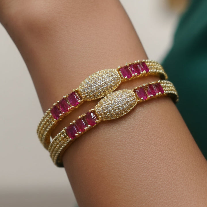 Elegant Gold-Tone and Red Stone American Diamond Bangles