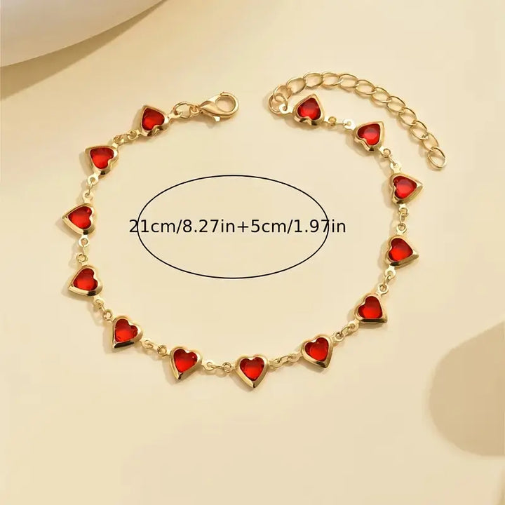 Embellished Red Heart Ankle Bracelet - KC Golden-Plated Chain for Women