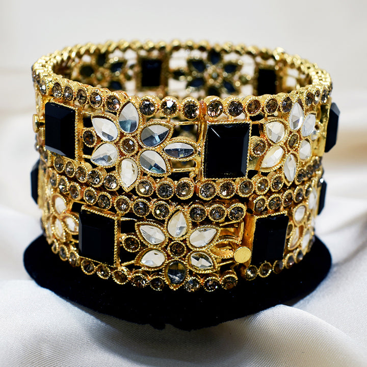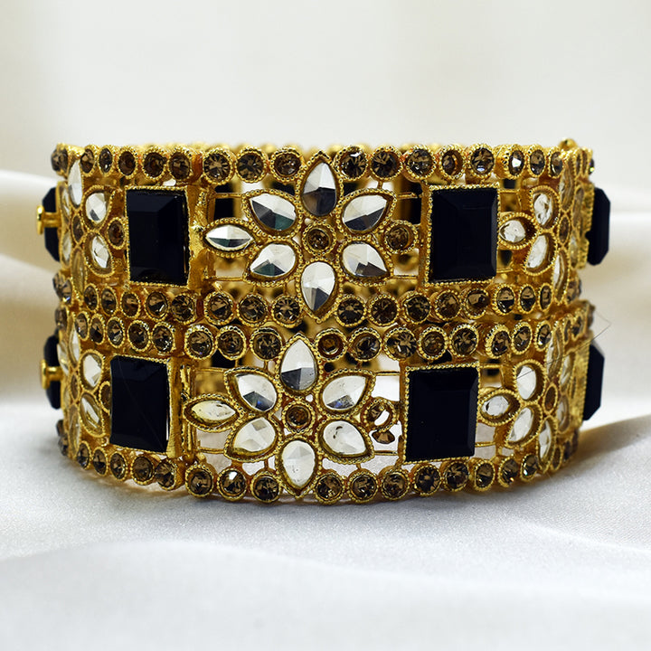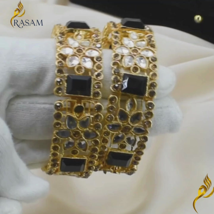 Exquisite Set of Two Gold-Plated Bangles Adorned with Elegant Black Stones
