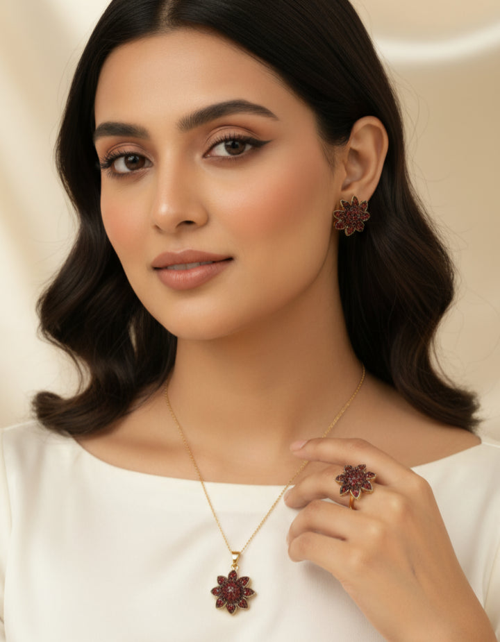 Floral Ruby Radiance Necklace Set