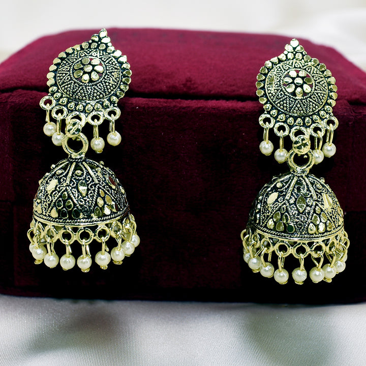 "Gilded Grace: Indian Golden Jhumka Earrings