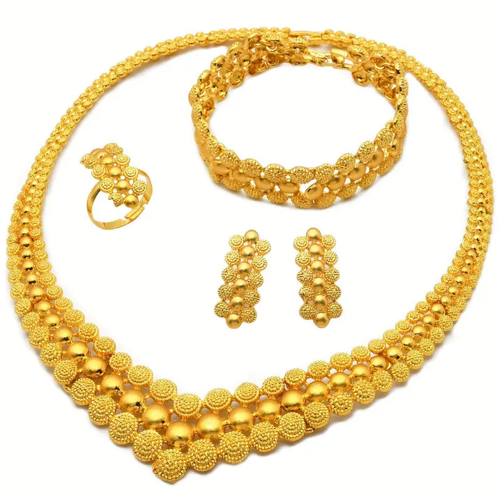 Luxurious Arabian Style Jewelry Set: 1 Necklace, 1 Bracelet, 1 Pair of Earrings, and 1 Ring