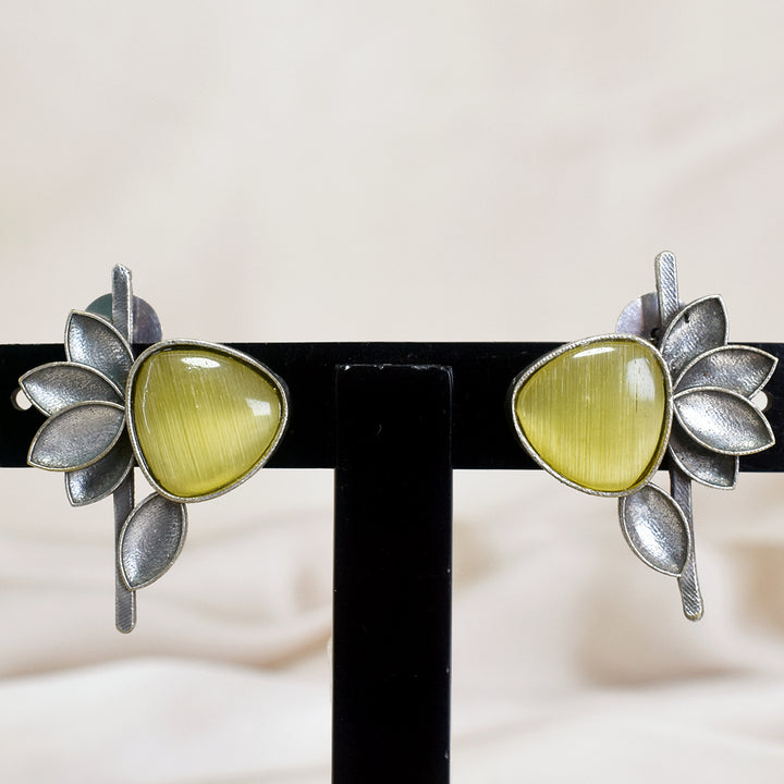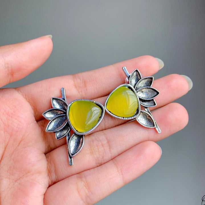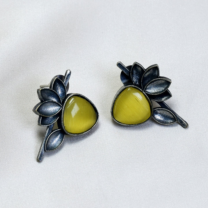 Monalisa Yellow Stone Half Flower Stud Earrings