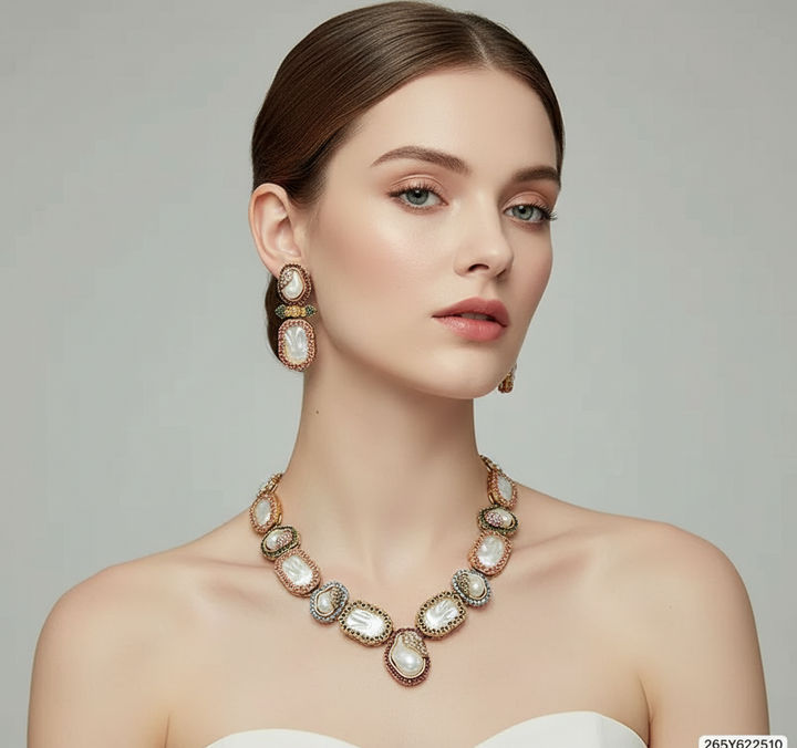 Mother of Pearl & Ruby Red Necklace Set Collection