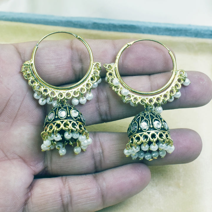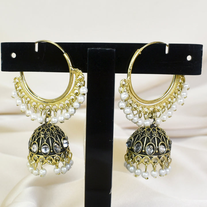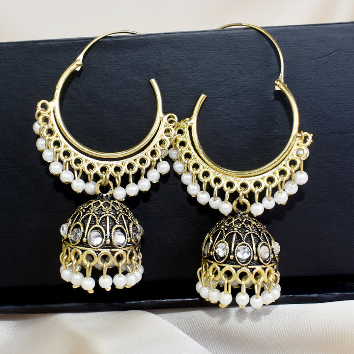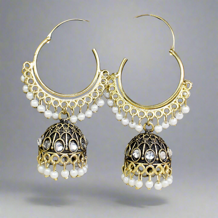 Oxidized Indian Jhumka with White Beads: Classic Traditional Earrings