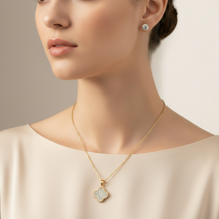 Pristine Elegance: White Stone Van Cleef Necklace Set
