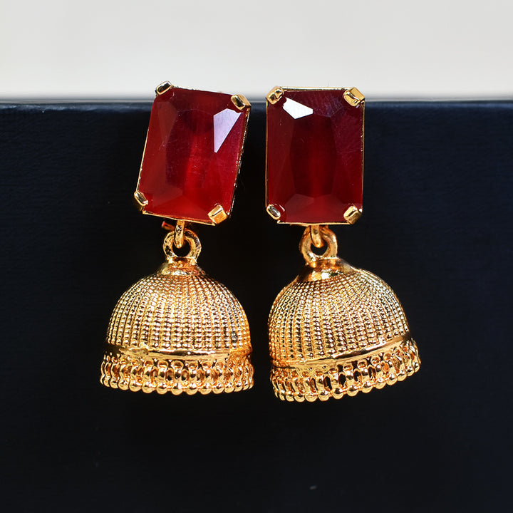 Radiant Red Stone Gold-Plated Jhumka Earrings