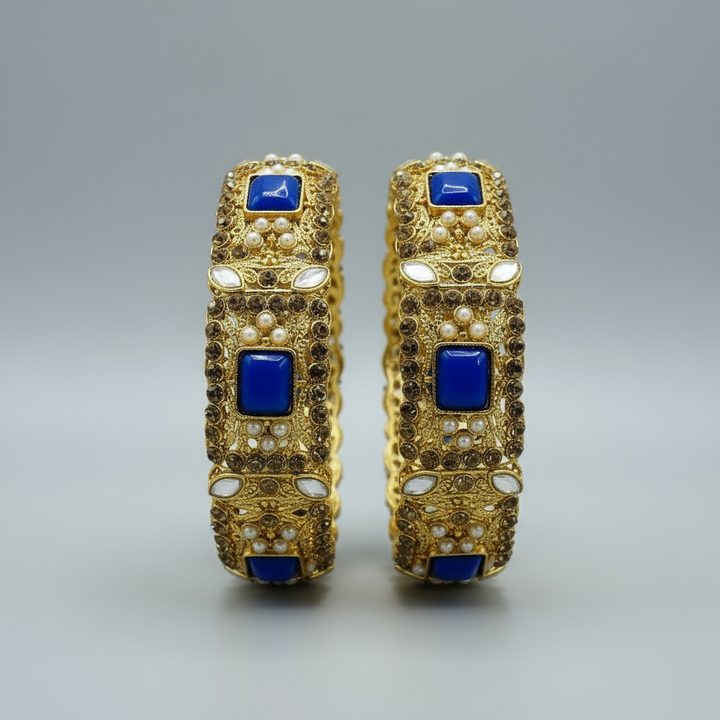 Set of Two Gold-Plated Bangles with Stunning Blue Stones