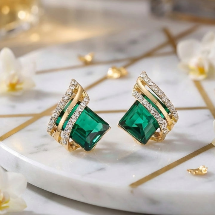 Sophisticated Rectangle Earring Featuring Leaf Design