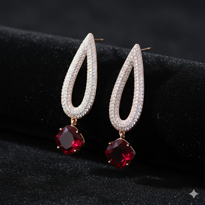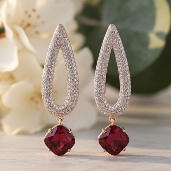 Sparkling Statement Xuping Earrings with Ruby Hues