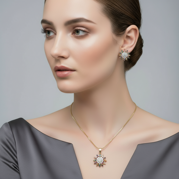 Vibrant Blooms Ensemble: Multicolored Flower Necklace Set