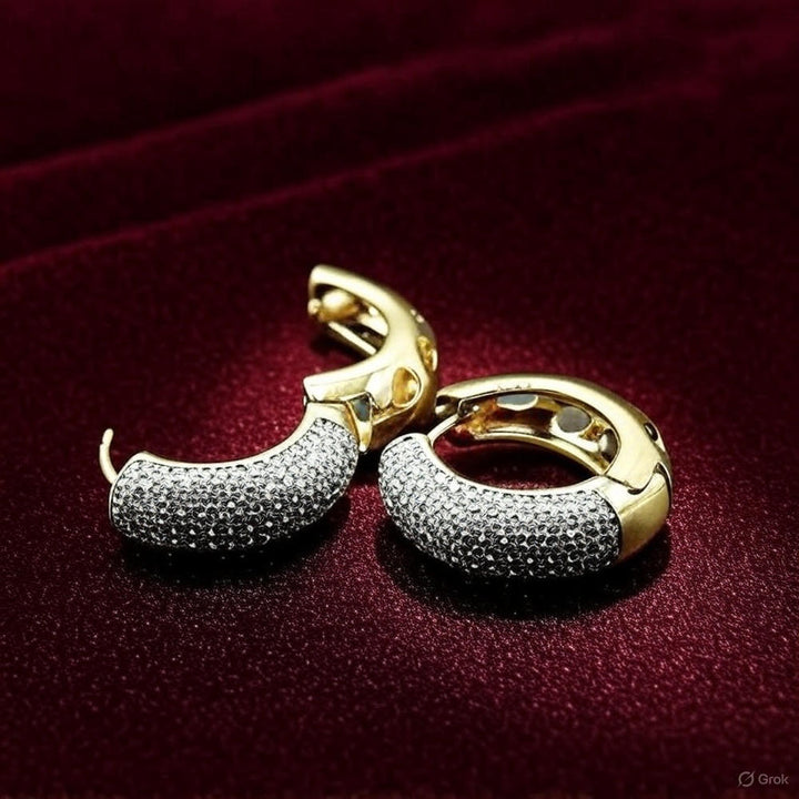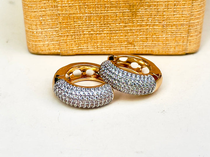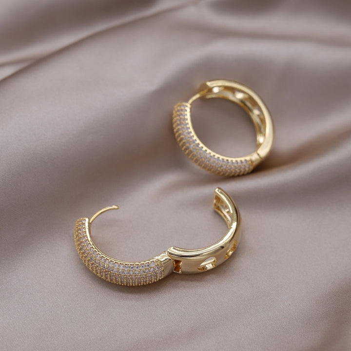 Xuping Circle Geometric Huggie Earrings with Pavé Cubic Zirconia - Gold Tone