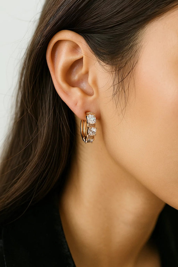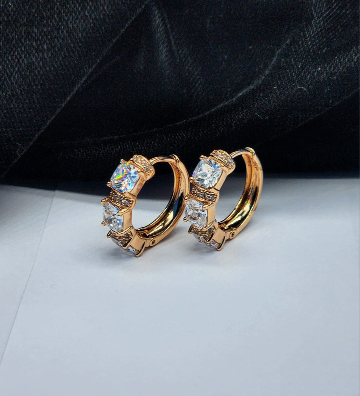 Xuping Square Cut Hoop Earrings with Cubic Zirconia - Gold Tone